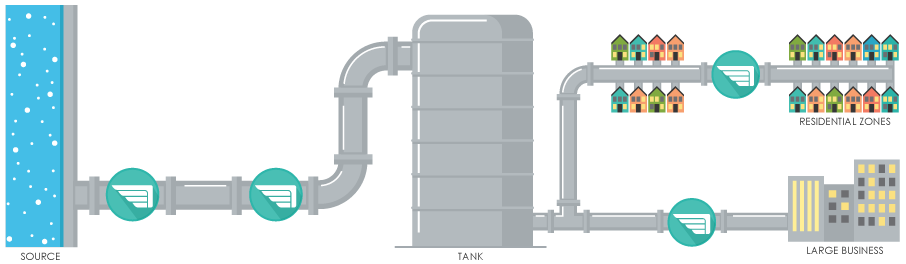 Our specialty is recovering energy at water system pressure drops by implementing our Energy Recovery Hydro Turbines. Applications are found in nearly all drinking, irrigation, or waste water transmission lines and power generated with these systems can be used on-site or sold to local utilities for profit.